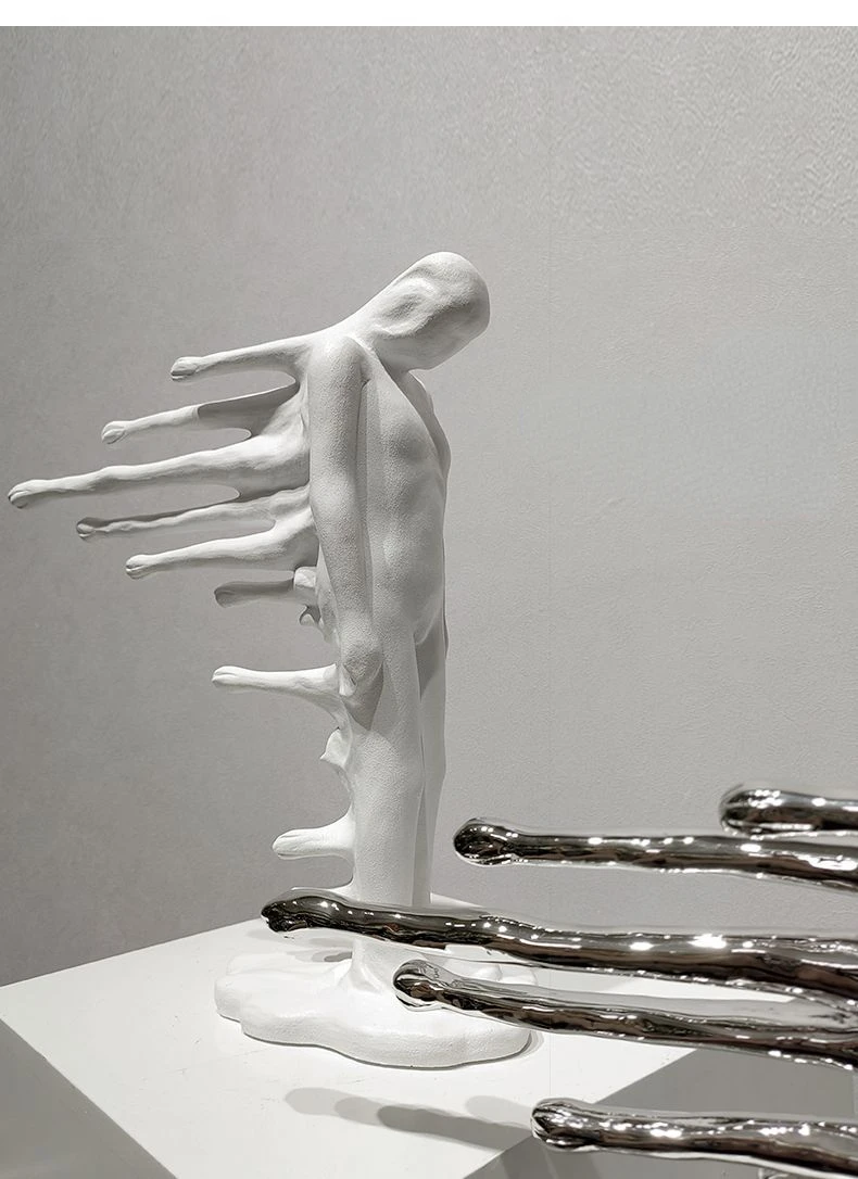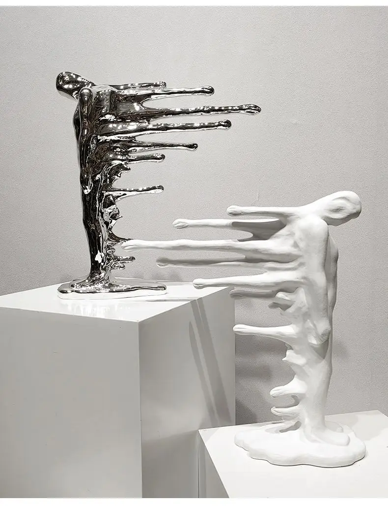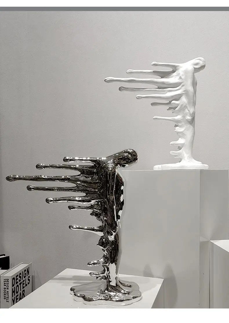 Product Title: Resin Figure Sculpture Abstract Human Body Ornament Water Drop Bevel Figurine Silver Man Decorative Figurines Home Accessories